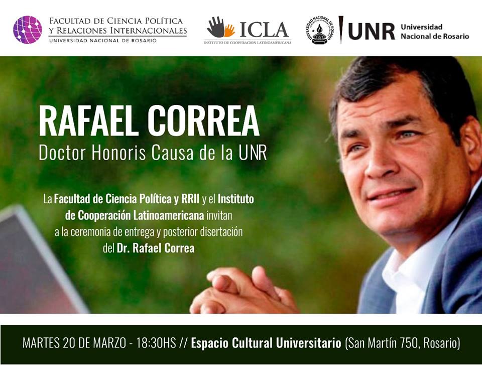 Correa participó el miércoles a las 18.30 de un acto público en la Facultad de Ciencia Política y Relaciones Internacionales.