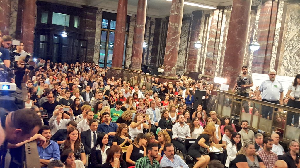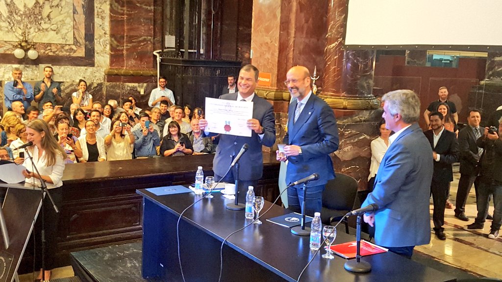 Luego de la conferencia de prensa, Rafael Correa se trasladó al Espacio Cultural Universitario (ECU) de San Martín 750 donde recibió el título de Doctor Honoris Causa a sala llena.