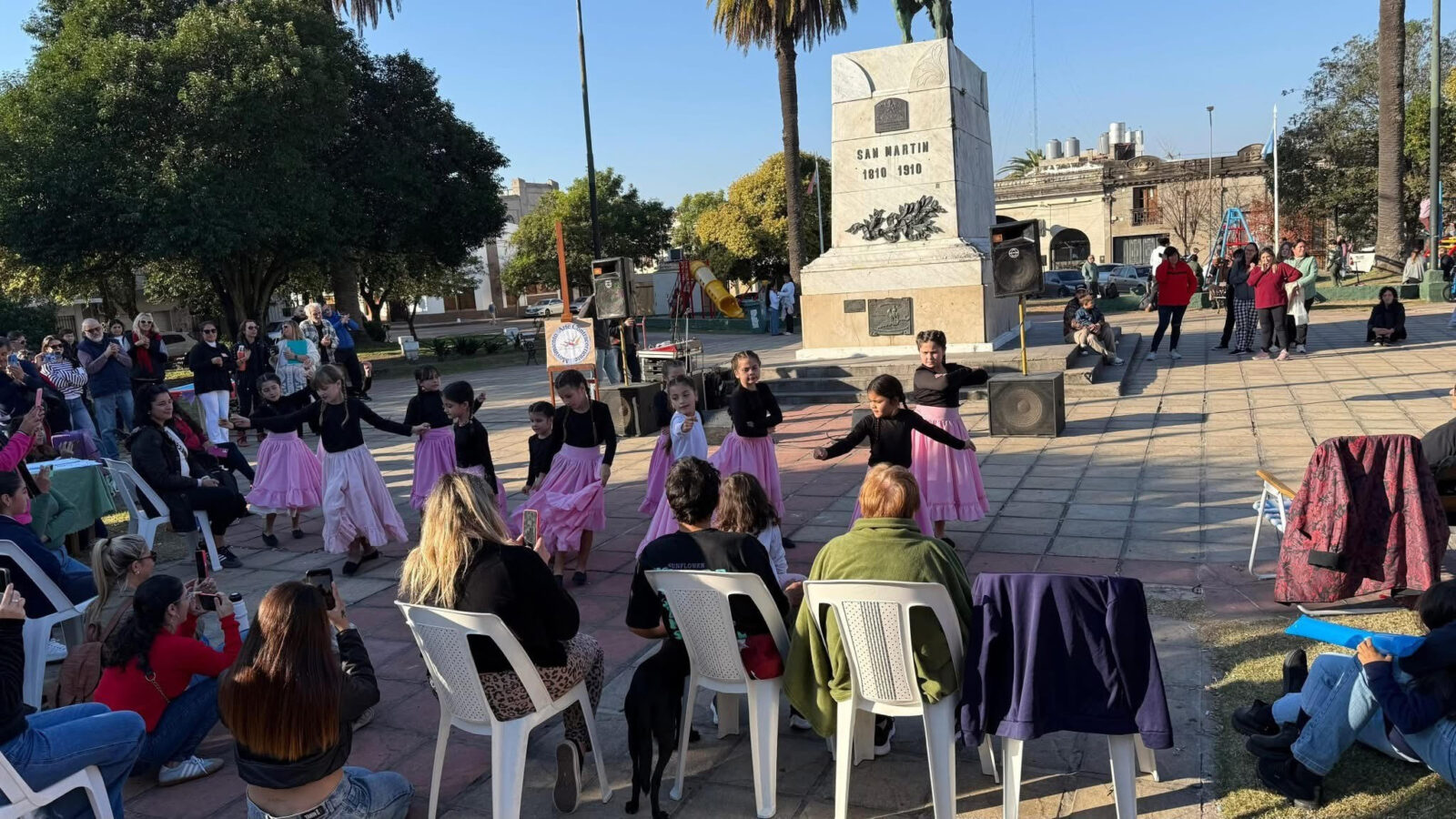 El evento fue conducido con carisma y soltura por Solange Restaino y Paula Sturniolo, quienes le dieron color y dinamismo a la tarde con su presencia escénica y sensibilidad. La decoración de la plaza, realzada por los coloridos banderines colocados por Luisa, aportó aún más belleza al entorno.