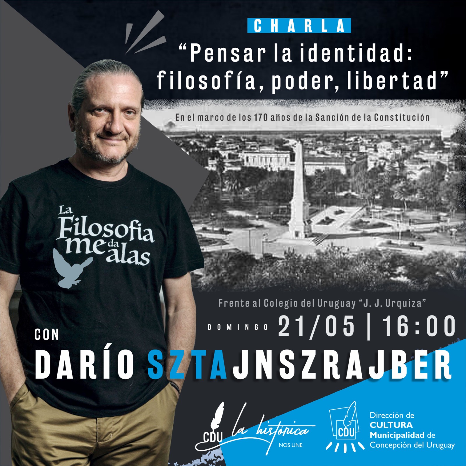 En el marco de las actividades organizadas por el municipio con motivo del 170° aniversario de la sanción de la Constitución Nacional, brindará una charla en Concepción del Uruguay el docente y filósofo Darío Sztajnszrajber. Será en la calle, frente al Colegio del Uruguay y también habrá sillas a beneficio de instituciones civiles.“Pensar la identidad: Filosofía, poder y libertad”, es el tema elegido por él y los organizadores de la actividad.