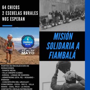 En la semana del 25 al 30 de mayo se iba a desarrollar la 7ma. edición de «FIAMBALÁ DESERT TRAIL», en Fiambalá, Catamarca, con distancias de 200, 100, 50, 35, 21 y 12 km. En forma previa, para todas las ediciones anteriores se realizaron colectas solidarias en todo el país (las hacen los participantes) y se entregaron en el desarrollo de la carrera en diferentes escuelas y lugares necesitados de la zona. Es una característica distintiva de esta prueba, ya que muchas veces los participantes viajan desbordados de mercadería para entregar y eso adquiría más importancia que la competencia en sí.