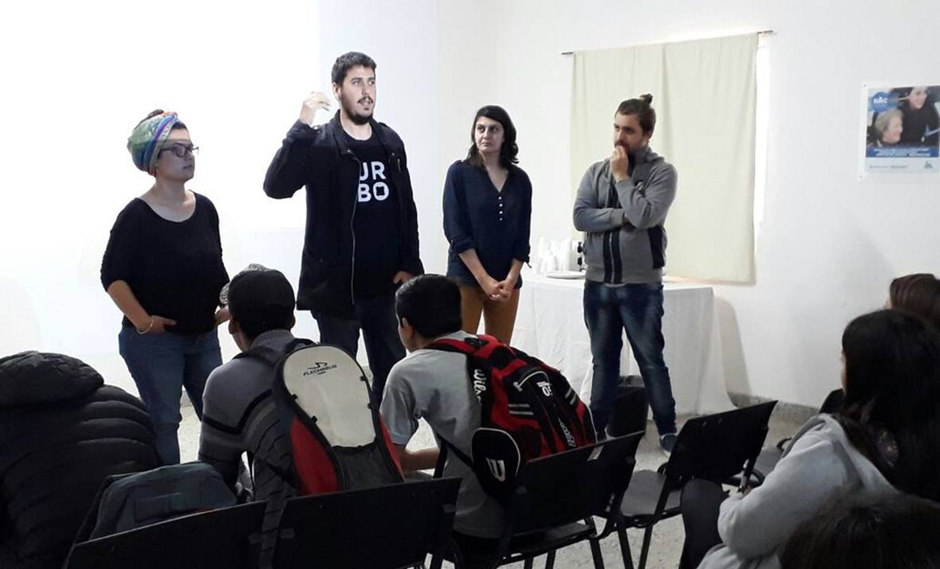 Durante la mañana en el CIC participaron chicos de diferentes colegios secundarios de la ciudad y también del departamento, y a la hora de la parte práctica, cuatro capacitadores se dividieron en cuatro grupos y trabajaron las temáticas con diferentes herramientas y técnicas que brinda el programa: muralismo, fotografía, video y teatro.