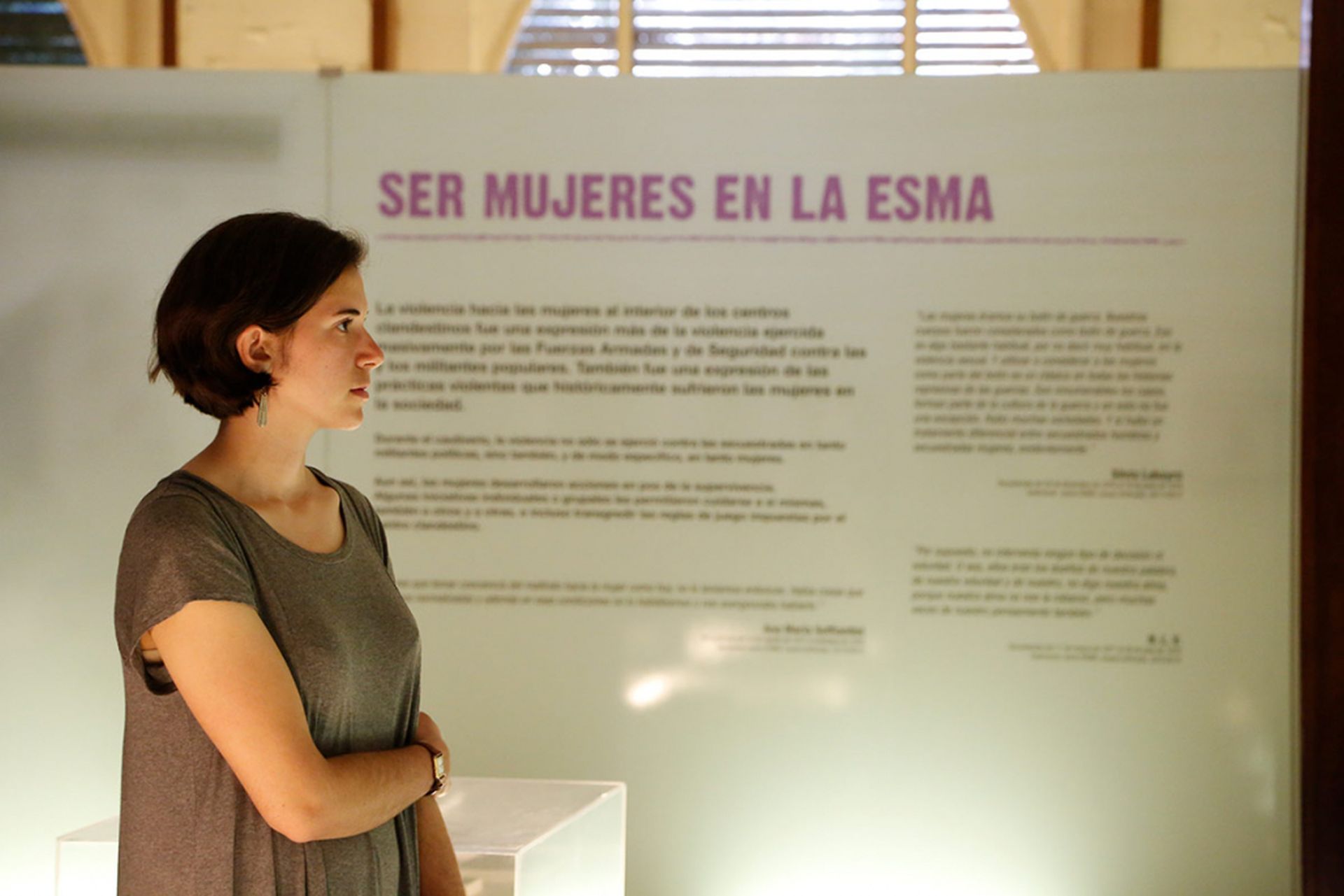 La exhibición se propone revisar la historia reciente en clave de género, basada en los testimonios de las sobrevivientes de la ESMA durante los juicios a las Junta Militares, incluyendo el accionar de la justicia en las causas posteriores.