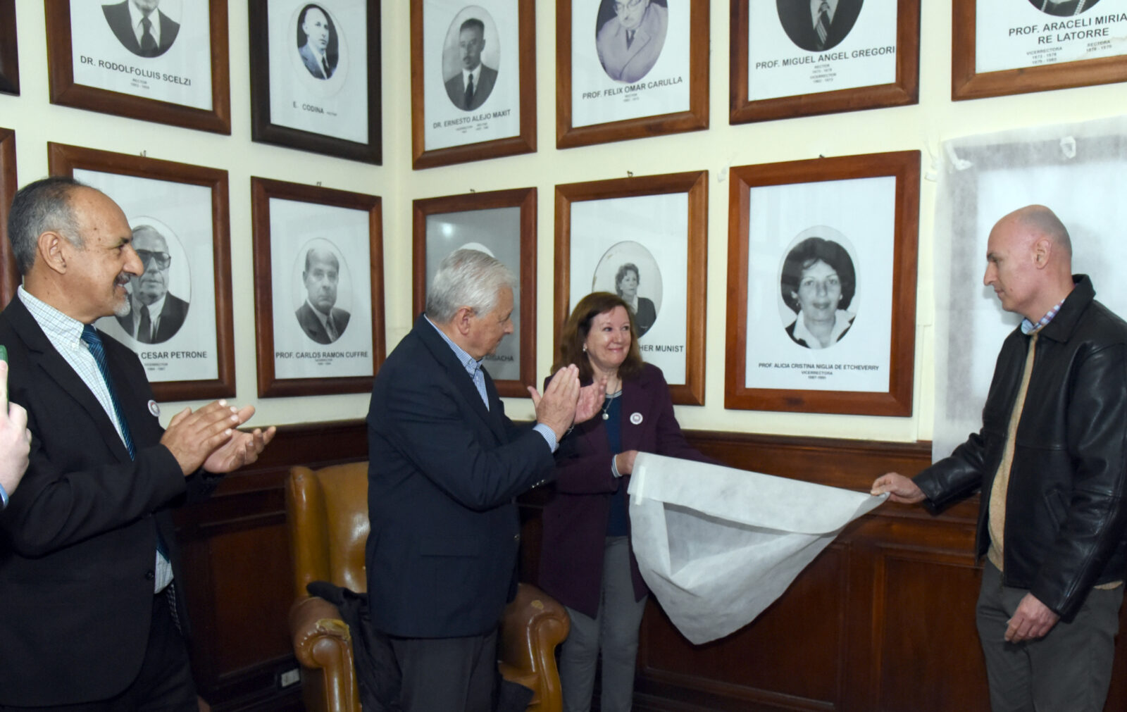 Este viernes por la mañana, en la histórica Sala de Profesores del Colegio Superior del Uruguay, se descubrieron cuatro nuevos cuadros de ex vicerrectores de la institución. Con la presencia de familias, alumnos y allegados, se completaron las fotografías correspondientes a las autoridades del siglo XX.