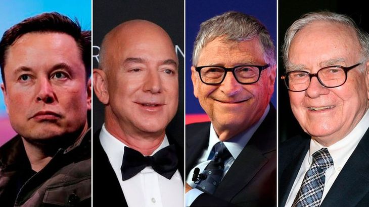 El último ranking difundido por la revista Forbes coloca en primer lugar a Elon Musk, dueño de Tesla y Space X, con un patrimonio de u$s304.000 millones, seguido de Bernard Arnault, de LVMH, con unos u$s198.000 millones. El fundador de Amazon, Jeff Bezos ocupa el tercer lugar con una fortuna de u$s189.000 millones. Luego le sigue Bill Gates, de Microsoft (4º puesto, u$s137.000 millones); el magnate del software Larry Ellison (5º puesto, u$s122.000 millones); Larry Page, de Google (6º puesto, u$s121.000 millones); Mark Zuckerberg, de Facebook (7º puesto, u$s117.800 millones); Sergey Brin, de Google (8º puesto, u$s117.300 millones); el legendario inversor Warren Buffet (9º puesto, u$s114.000 millones) y Steve Ballmer, de Microsoft (10º puesto, u$s102.000 millones).