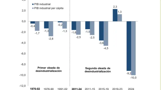 “Una de las características distintivas de la nueva desindustrialización respecto a la del último cuarto del siglo XX reside en que se trata de un fenómeno que involucró políticas antagónicas –o, al menos, sustancialmente distintas– respecto a los estímulos (o desestímulos) a la expansión sectorial y de la economía en general. Si bien desde el punto de vista cuantitativo eso se reflejó en sus grados de contribución a la crisis sectorial, también resulta importante señalar que el fenómeno estructural se impone frente a las políticas de aliento cuando se intentaron desplegar”, puede leerse en el trabajo firmado por Manzanelli.