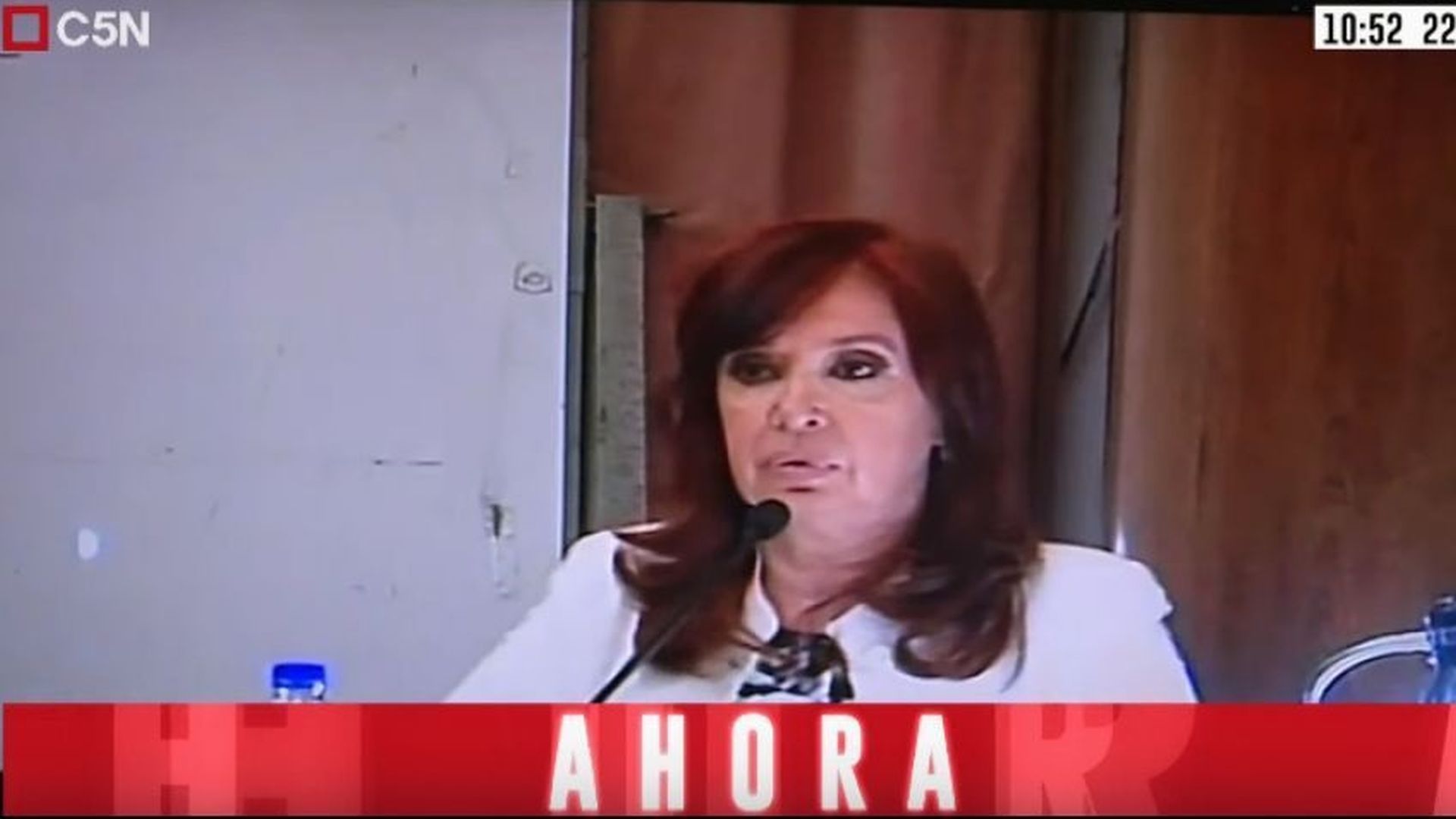 Una funcionaria judicial obligó a ambos medios dejar de transmitir la declaración que reproducían desde una pantalla donde aparecía la ex presidente en pantalla afuera del tribunal, en la sala de periodistas.