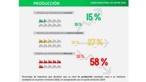 Según el Informe de Coyuntura elaborado por la Unión Industrial de Entre Ríos (UIER), la medida oficial de aislamiento social agravó la situación de la mayoría de las empresas productivas. Más de la mitad de las industrias de la provincia ya registraban caídas en los niveles de producción y de ventas durante el primer trimestre del año.