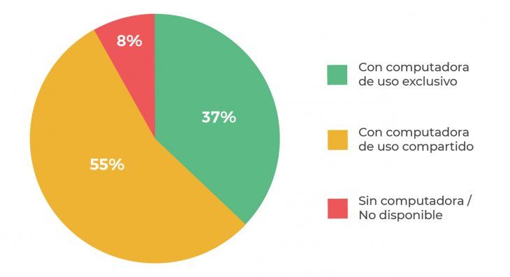 – Solo 2 de cada 5 docentes (37%) cuentan con una computadora de uso exclusivo para trabajar en el hogar