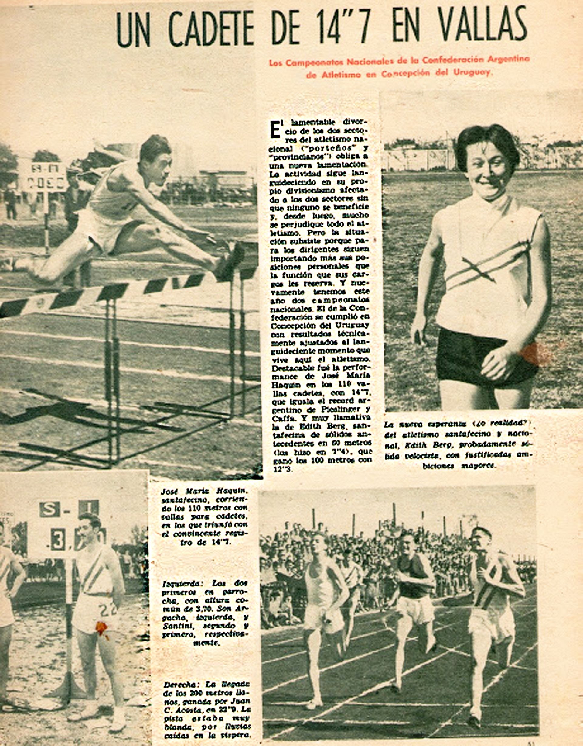 El profesor Orlando César Busiello en su valiosa y amena evocación del deporte uruguayense vuelca las expresiones de Alberto Salotto, cronista de la revista “El Gráfico” y un especialista en la materia, que supo decir en 1954: “Desde aquellos lejanos tiempos en que un grupo de muchachos entusiastas montaron en Córdoba una máquina para fabricar campeones… no habíamos tenido en este último cuarto de siglo un surgimiento en el atletismo del interior más meteórico que el que nos presenta Concepción del Uruguay”. En otro apartado continúa diciendo: “Después de pocos años de trabajo se ha convertido en una realidad el poderío atlético de Concepción del Uruguay, que ya tiene valores de primer plano nacional”.