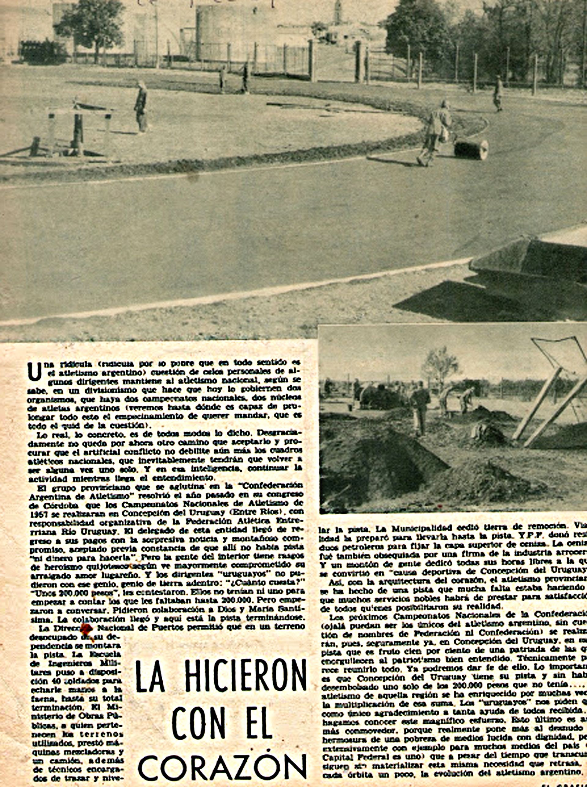 Tres años después, al referirse al Torneo Argentino y al descomunal esfuerzo de los organizadores para recibir centenares de atletas de todo el país, Salotto manifestaba: “…en Concepción del Uruguay, en esta pista que es fruto cien por ciento de una patriada de las que enorgullecen el patriotismo bien entendido… hagamos conocer este magnífico esfuerzo”, señalaba el periodista que tituló con un emblemático: “La hicieron con el corazón”.