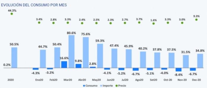 «Luego del fuerte crecimiento en marzo como consecuencia de la emergencia sanitaria, las tasas comenzaron a desacelerar en los meses subsiguientes, a partir de junio y persistiendo hasta diciembre inclusive, que se evidencia una contracción de la demanda», pormenorizó el informe.