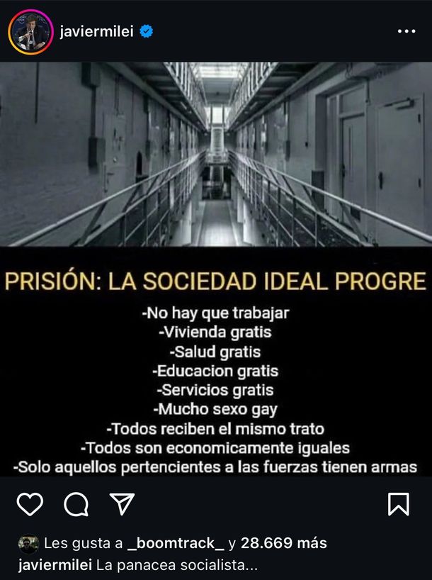 El presidente subió una imagen de una prisión a su cuenta de Instagram con una interpretación muy particular.