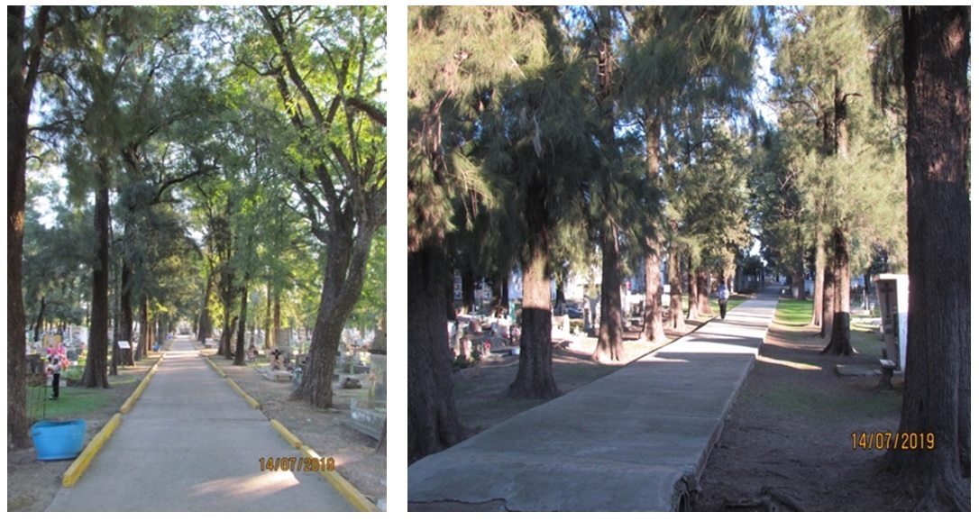 La presencia de estos árboles responde a los conceptos higienistas del Siglo XIX, cuyo fin -más allá del paisajístico que hoy podemos ver- servían de cortinas para impedir la expansión de los miasmas propios del lugar. Asimismo la elección de los especies no es aleatoria ya que se eligen por su calidad ambiental y su carga simbólica. Estas arboledas representan el patrimonio natural del cementerio; el patrimonio intangible, rescatar la memoria de Doña Dolores Costa, una mujer cuya presencia al lado del Gral. Urquiza ha sido fundamental para su familia, la historia de nuestra región y el cementerio.