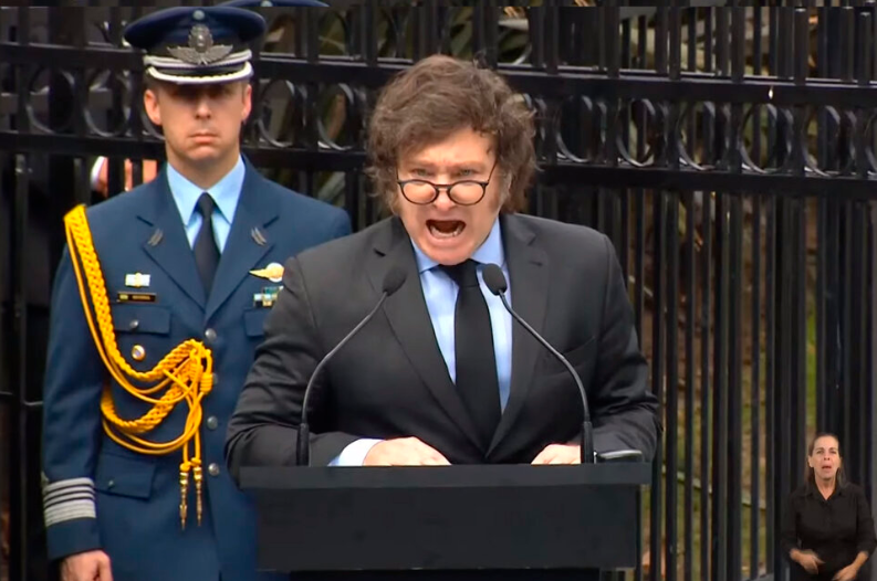 Milei leyó su discurso. Ratificó el “reclamo inclaudicable” por la soberanía pero en ningún momento cuestionó ni nombró al país al que habría que hacerle ese reclamo: Gran Bretaña. Eso sí, aprovechó para criticar a lo que él sigue llamando la casta política. Dijo que había que hacer “un reclamo real y sincero, no meras palabras en foros internacionales” que, en su opinión, hasta ahora tuvo un “nulo impacto en la realidad” y que “solo sirvió al político de turno para impostar un falso amor por el país”.