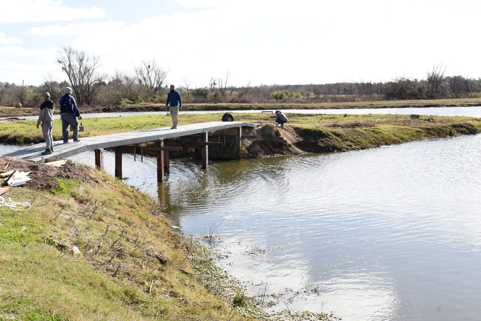 Luego de vaciarlo, proceder a su limpieza y volver a llenarlo, fueron instalados allí dos puentes peatonales, que –independientemente de su función- añaden un atractivo visual.