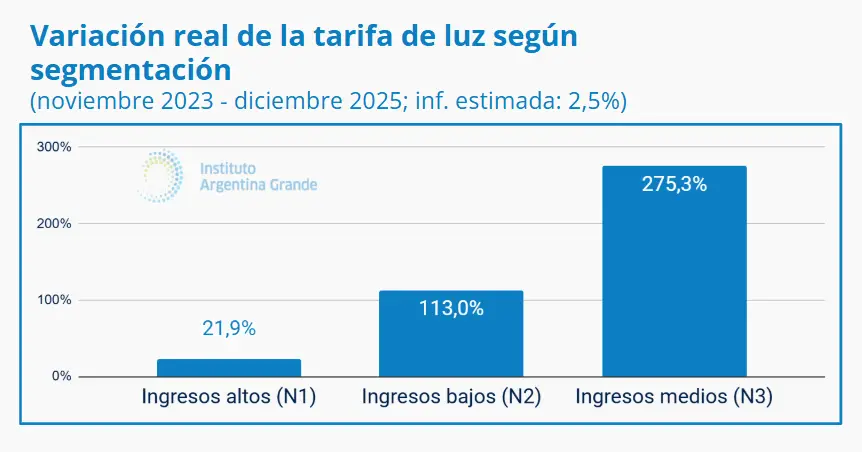 Como resultado, creció de forma sostenida el peso de los servicios en las economías domésticas. “El cambio en la estructura de precios relativos -particularmente tarifas y servicios- redefine la canasta efectiva de consumos no alimentarios. Por eso, aunque la inflación sea modera, los hogares no necesariamente perciben una mejora equivalente en su capacidad adquisitiva”, aseguraron desde el Observatorio de la Deuda Social Argentina (ODSA). En esa línea, el peso de las tarifas de servicios en los gastos familiares se cuadruplicó en la gestión actual, a la vez que en enero se anunció un nuevo aumento (+2,5%) para las tarifas de luz.