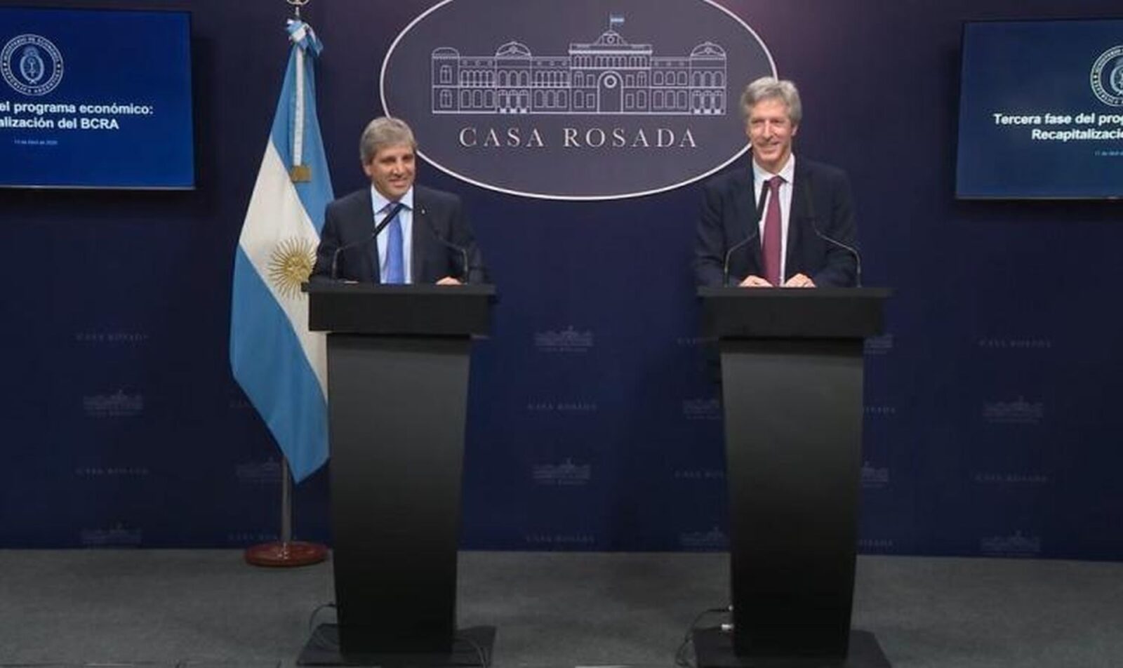 En conferencia de prensa, el ministro de Economía, Luis «Toto» Caputo, detalló junto al titular del Banco Central (BCRA), Santiago Bausili, el nuevo esquema cambiario. El fin del cepo al dólar y un sistema de flotación cambiaria dentro de bandas donde la divisa se moverá entre los 1.000 y los 1.400 pesos. Del mismo modo, confirmó que el FMI aprobó el nuevo acuerdo con la Argentina.