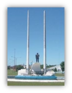 El monumento que se encuentra al ingreso de nuestra ciudad se levantó por iniciativa del Club de Leones con motivo del centenario del fallecimiento del prócer entrerriano, en 1970. Sin embargo, la obra edilicia tiene un largo historial.