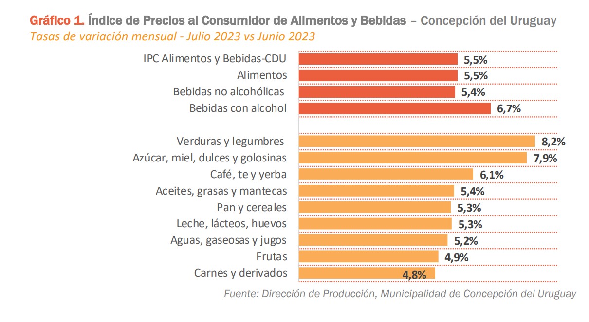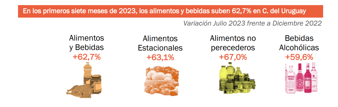 del Uruguay subieron 5,5% en julio, con un alza de 5,5% en Alimentos y 5,4% en