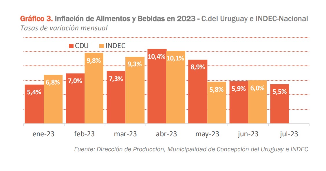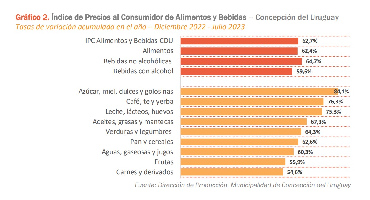 El Indice de Precios al Consumidor de Alimentos y Bebidas de Concepción del Uruguay es un indicador económico que mide la evolución del nivel general de precios de una canasta fija y representativa de productos adquirida para el consumo de los hogares residentes en la ciudad.