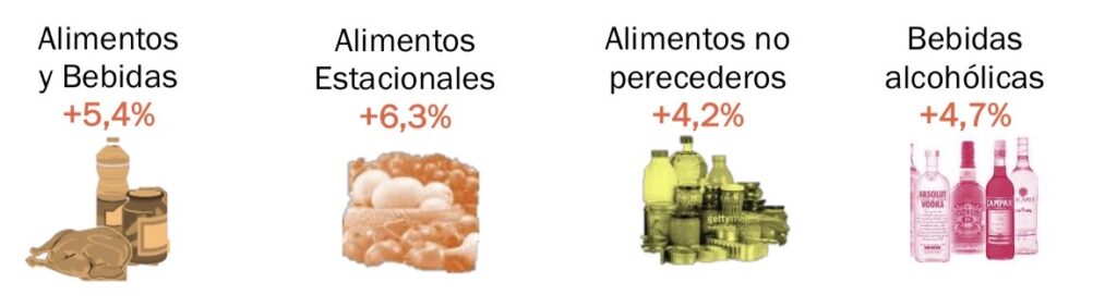 alimentos y 5,2% en bebidas. Las bebidas alcohólicas subieron 4,7%.