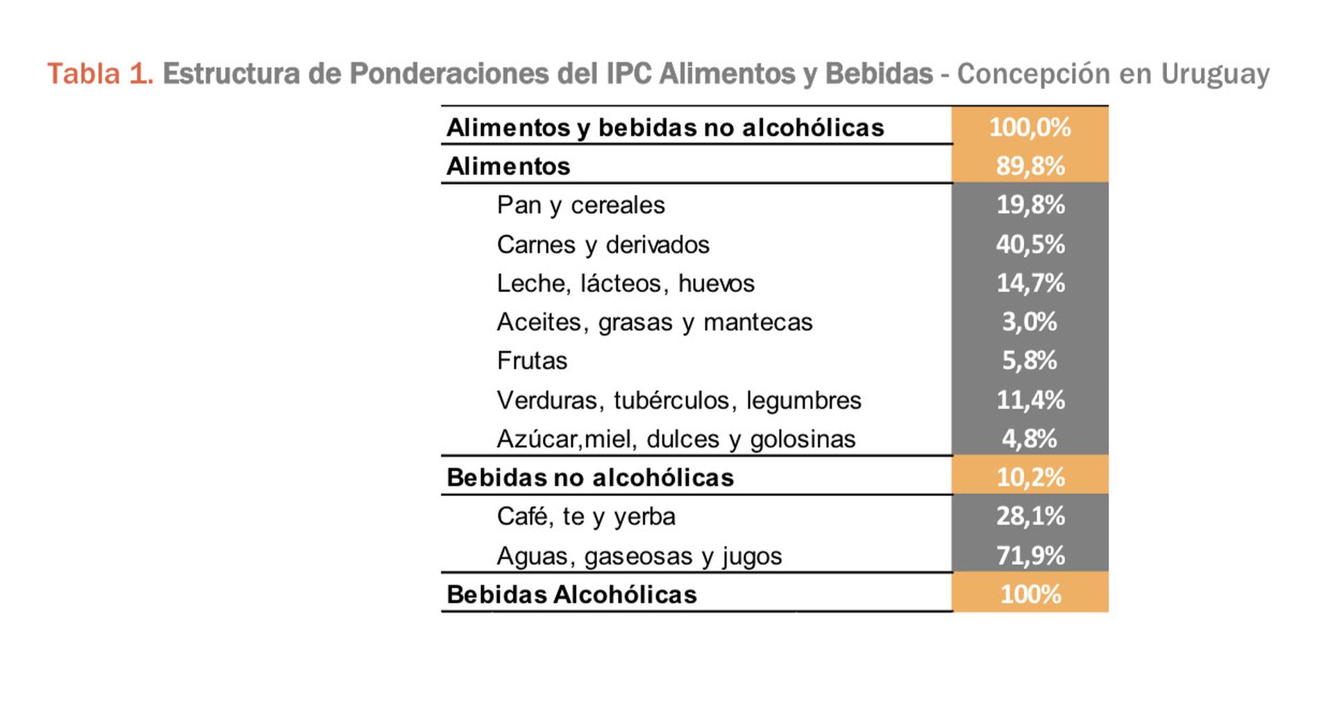 cada clase de alimentos y de bebidas tiene una determinada ponderación en el índice.