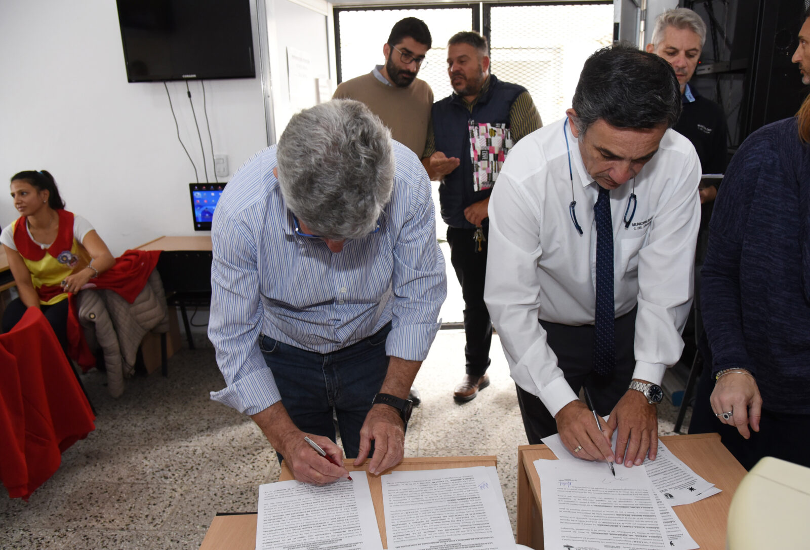 El convenio fue firmado por el Presidente Municipal Martín Oliva, el Decano de la Facultad Regional de UTN Martín Hérlax y el secretario General de la AOEM Mario Barberán .