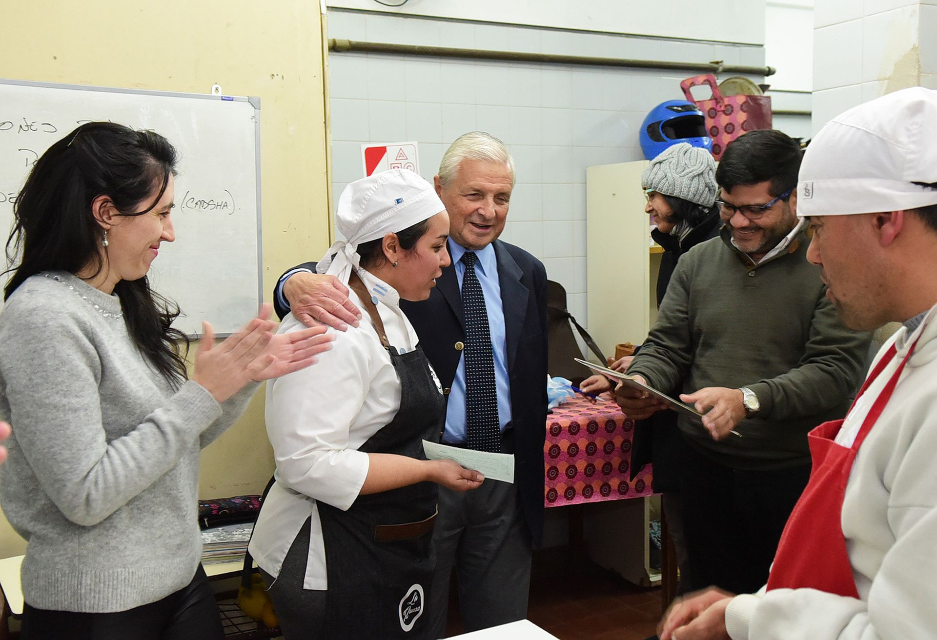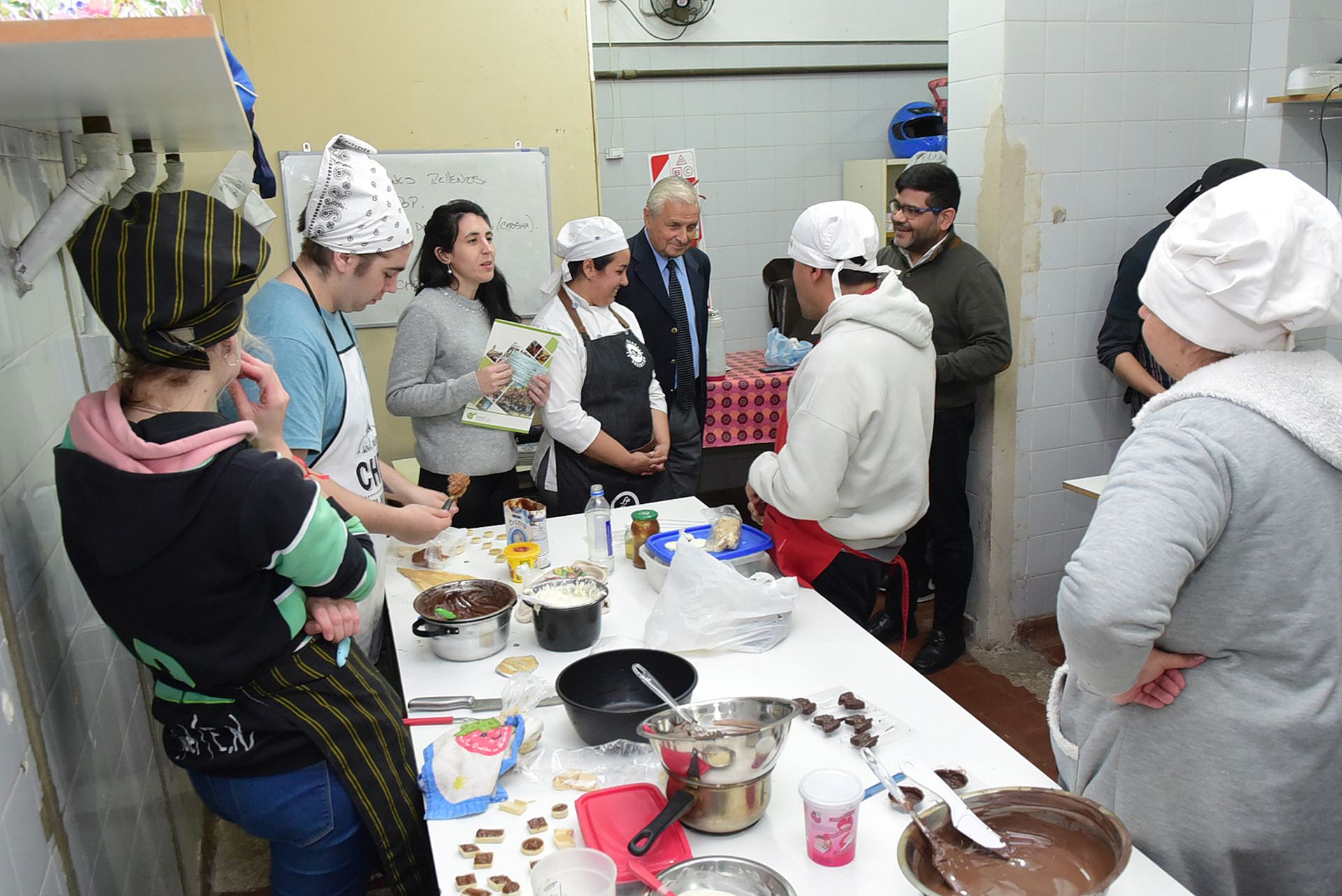 Lauritto fue recibido por directivos y docentes de la Universidad Popular, y tuvo oportunidad de dialogar con los alumnos del Curso de pastelería, quienes refirieron a los motivos que los llevaron a estudiar y a capacitarse en la institución que posee 81 años de vida, funcionando en el turno noche de la Escuela N°1 Nicolás Avellaneda. Además, expusieron algunos de los productos de chocolatería que realizaban en el momento de la visita.