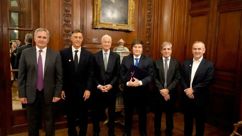 Dimon usó varias veces la palabra “garantía” en su paso por Buenos Aires. La mencionó en privado a Milei y Caputo, pero también en público, en un zoom con Ejecutivos del banco a nivel global donde llenó de elogios al presidente argentino.  «¿Dónde está mi motosierra?» gritó en un pico de euforia, luego de comparar a los burócratas públicos con «parásitos».