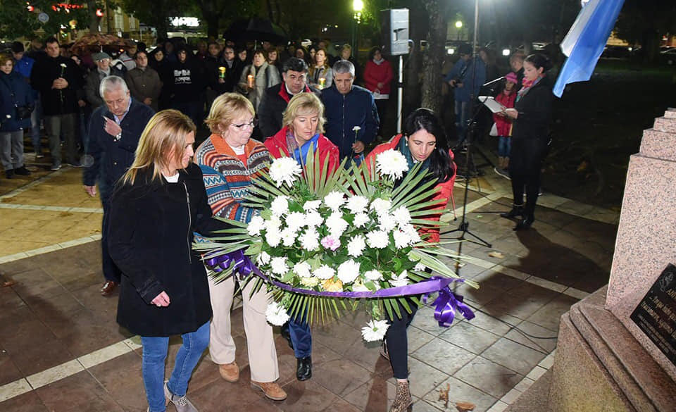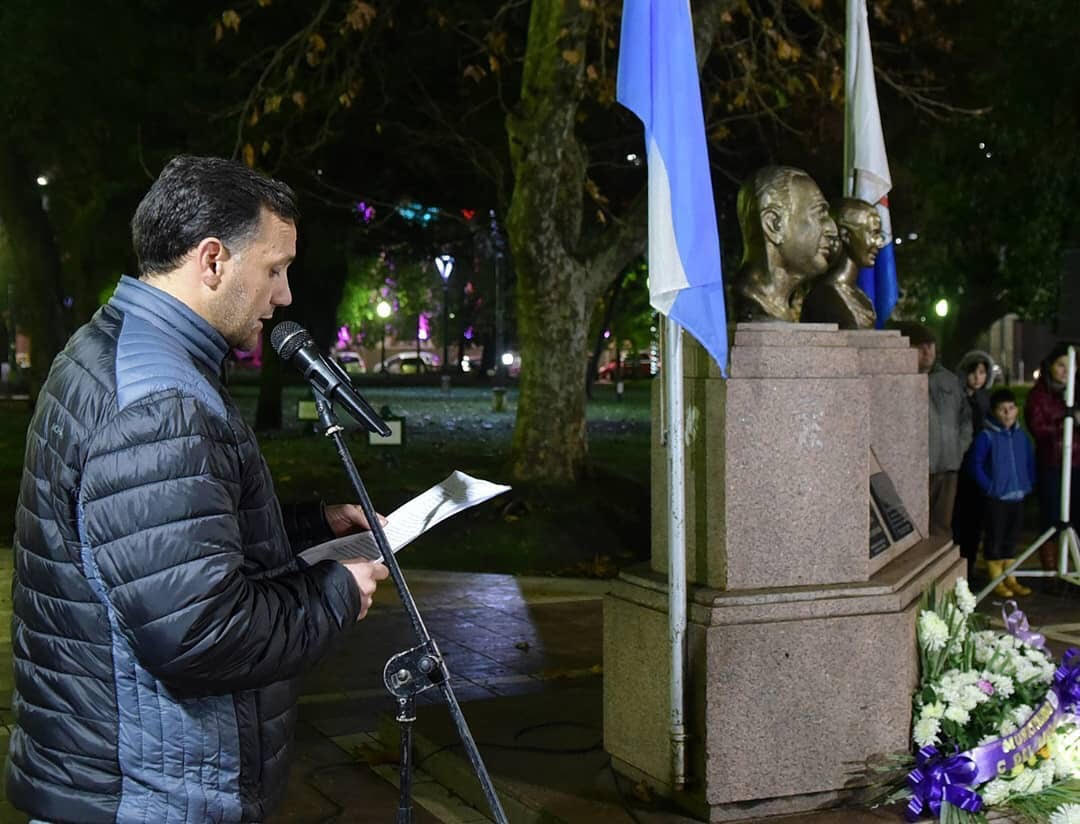 La ceremonia concluyó con la colocación de flores al pie de la obra evocativa, acercadas a los asistentes por el Consejo Departamental del Partido Justicialista (PJ), y la interpretación de la Marcha Peronista.