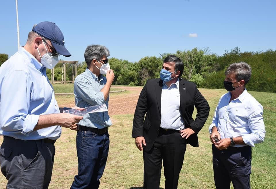 Durante la visita, el intendente municipal Dr. Martín Oliva, recorrió junto a José Aguerre, máximo representante del BID en Argentina, al Ministro de Planeamiento de Entre Ríos, Marcelo Richard, la zona donde se construirá la Planta de Tratamiento de Efluentes de Líquidos Cloacales.