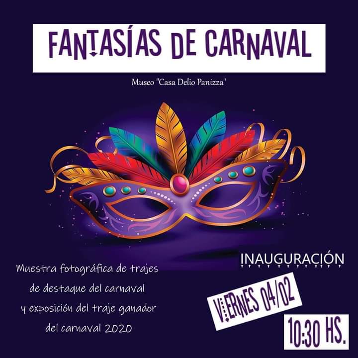 En el mes del Carnaval, este viernes será inaugurada la exposición “Fantasías de Carnaval” en el Museo Municipal “Casa de Delio Panizza”, a las 10.30. Tras su apertura, permanecerá hasta fines de marzo y podrá visitarse de 9 a 12 y de 18 a 21 horas.