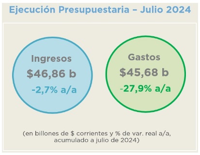 El informe precisó que en los primeros siete meses del año la Administración Nacional gastó menos de lo que recaudó y tuvo un superávit de $1,18 billones.