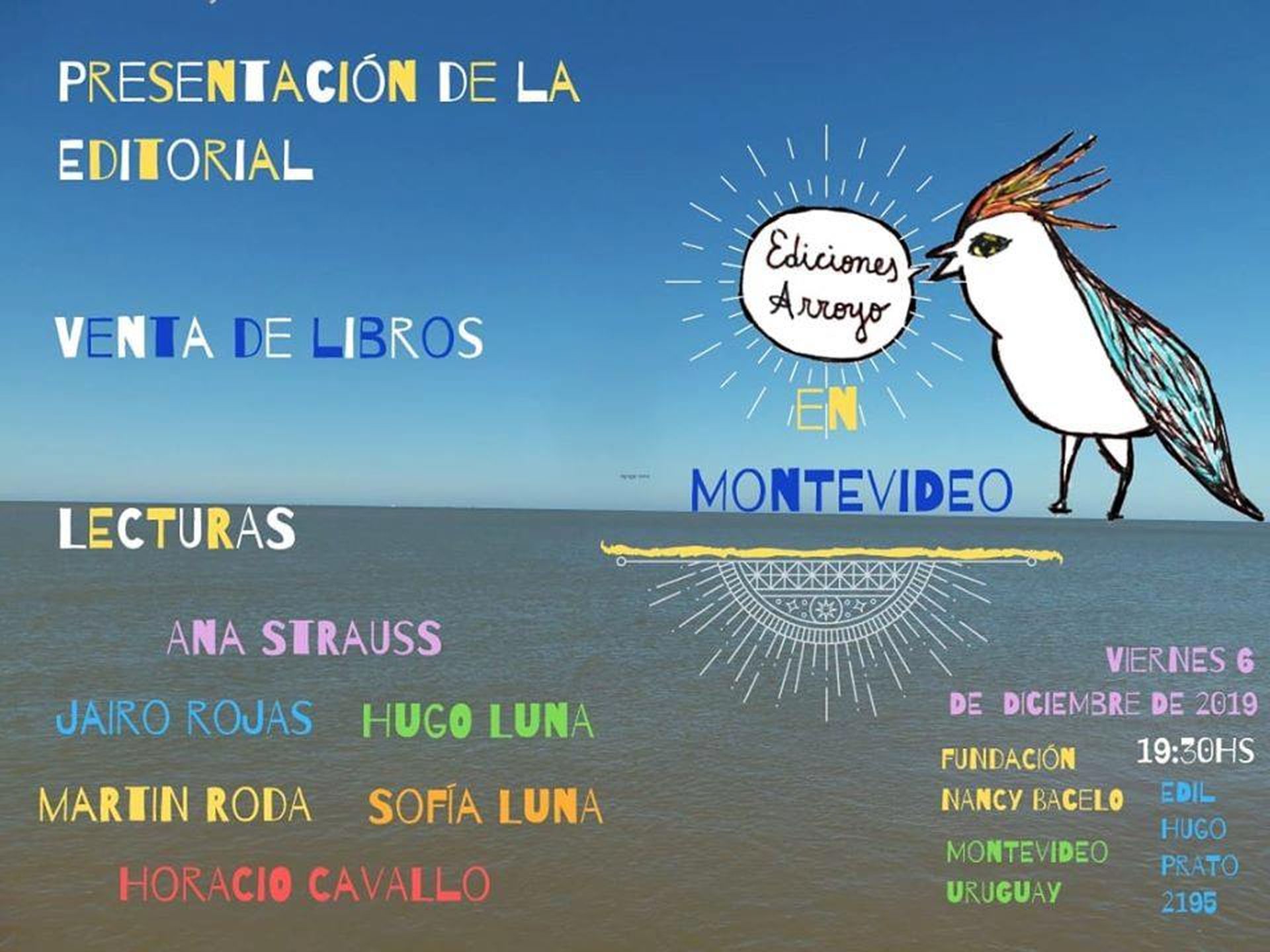 El viernes 6 de diciembre a las 19.30 hs se presenta en la ciudad de Montevideo, Uruguay, la editorial santafesina, Ediciones Arroyo. El encuentro será en la Fundación Nancy Bacelo, calle Edil Hugo Prato 2195, de la ciudad de Montevideo a partir de las 19.30 hs, con entrada libre y gratuita.
