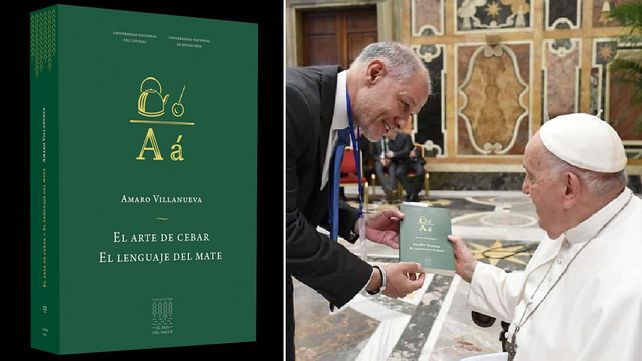 Durante el encuentro, además, Sabella le obsequió al Papa un libro de la Editorial de la Universidad Nacional de Entre Ríos (Eduner), El arte de cebar y El lenguaje del mate, de Amaro Villanueva. Se trata de dos obras centrales de uno de los autores más importantes de la editorial universitaria, compilados en una sola publicación.