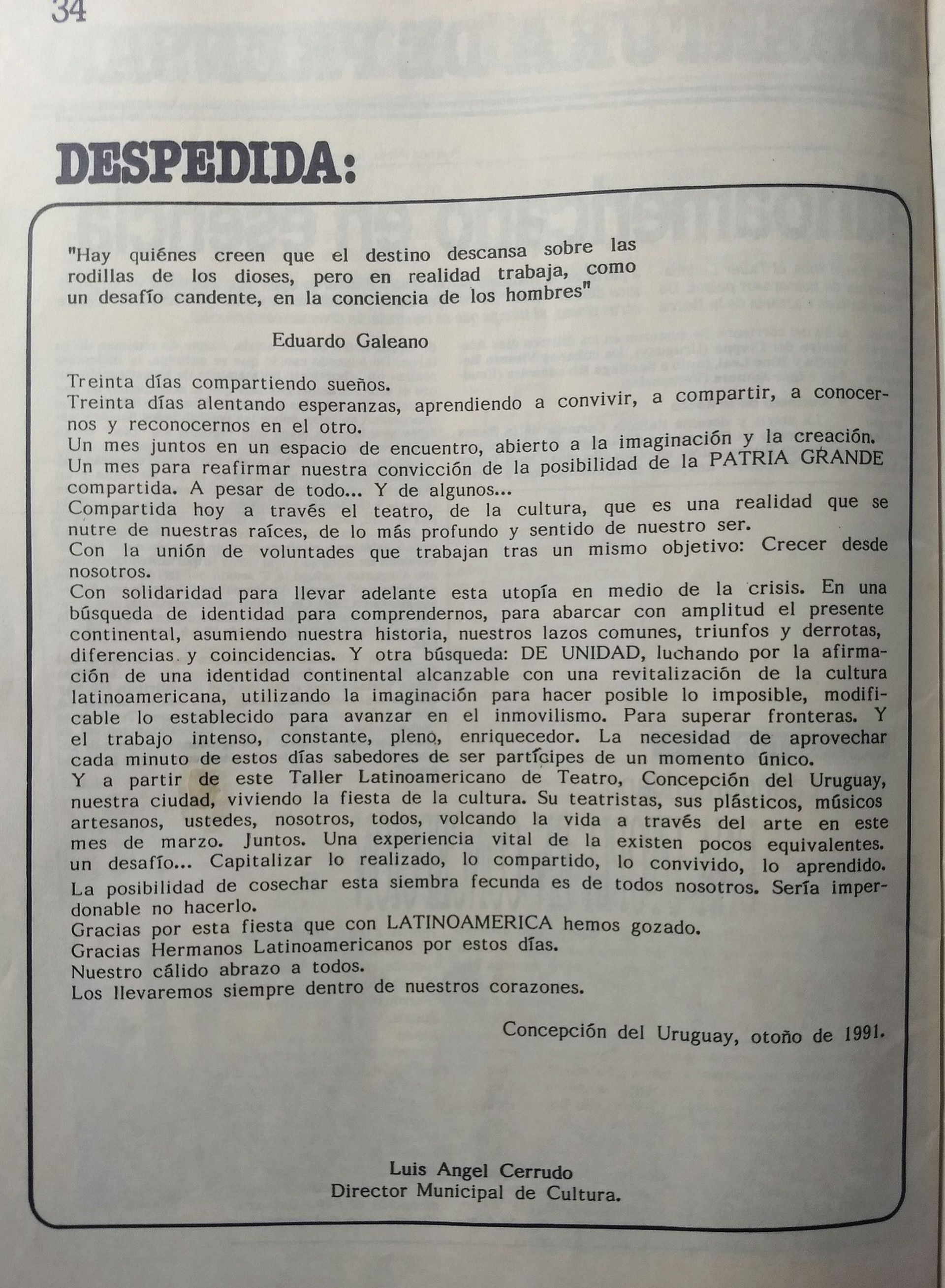 Hoy, a treinta años de esa fiesta uruguayense y latinoamericana, recordamos a todos los que la hicieron posible. Los traemos hasta este presente y les agradecemos por el entusiasmo, su trabajo y profundo compromiso. La generosidad puesta de manifiesto en el tiempo compartido, en cada gesto solidario, en cada mano tendida.