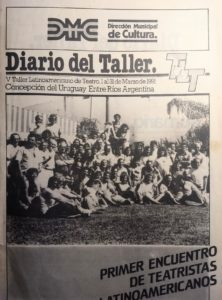 Y se iban sumando actividades al cronograma establecido a medida que se conocía la movida popular que el Taller estaba generando. A la programación de las obras que traía cada uno de los treinta teatristas se fueron sumando los grupos de teatro locales, de nuestra provincia, de la República Oriental del Uruguay y de Buenos Aires. Se organizó, así, una Muestra de Teatro Regional con grupos de Paraná, Maciá, Concordia, Paysandú, Gualeguaychú y Concepción del Uruguay. Obras de teatro en salas, en salones de actos de escuelas, en la plaza del barrio, en la calle. Intimistas algunas, populares otras o multitudinarias como ¨El conventillo de la Paloma¨ dirigida por Héctor Ferrari ó ¨De lejos venimos¨ de Ademar Bianchi y el Grupo Catalinas, ambas en la Plaza Ramírez, con una escenografía de alto impacto y gran cantidad de actores dando vida, voz y color a los conventillos. O el revuelo que generó Tato Pavlovsky y la puesta de ¨Potestad¨, con cuatro funciones en el Auditorio municipal con público escuchando desde fuera de la sala. Más de noventa representaciones teatrales se realizaron en el mes que duró el Taller Latinoamericano.