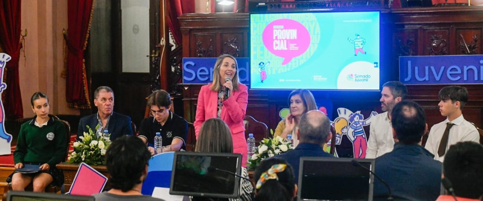 Seguidamente, mencionó el espacio de encuentro que mantuvo este jueves con senadores y senadoras juveniles, donde dialogaron sobre su recorrido por el programa y también sobre su mirada del presente y sus desafíos a futuro, especialmente, habló de la importancia de honrar la democracia. “En estos días cada uno y cada una de ustedes estuvo defendiendo sus proyectos, planteando sus sueños y sus ideas, pero sobre todo estuvieron debatiendo y creciendo con las opiniones de otros y otras. Y eso es muy importante que lo podamos poner en valor”, destacó la vicegobernadora.