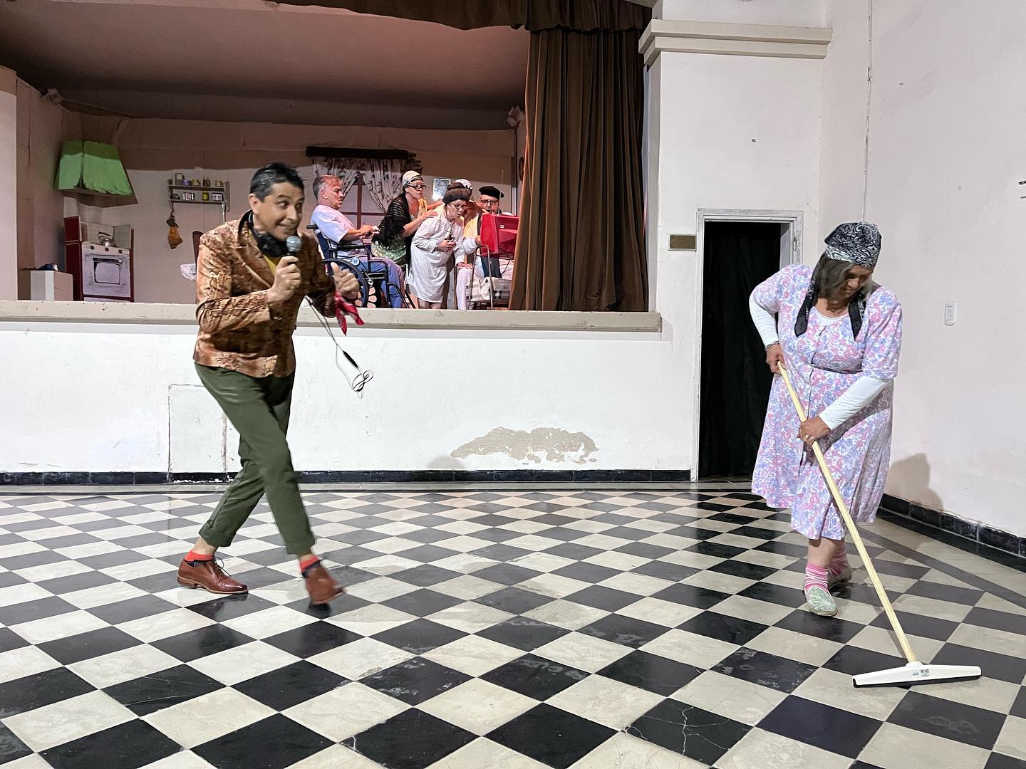 Es tremendamente disparatada, con personajes desopilantes y cambios que sorprenden constantemente, sin embargo no pierde el hilo. Es muy curioso eso. Es una especie de -Esperando La Carroza en este tiempo- Es un grotesco, donde el espectador se puede identificar con situaciones que pasan al lado de su casa, que pasan en su familia, pero tomadas desde el lado del humor.