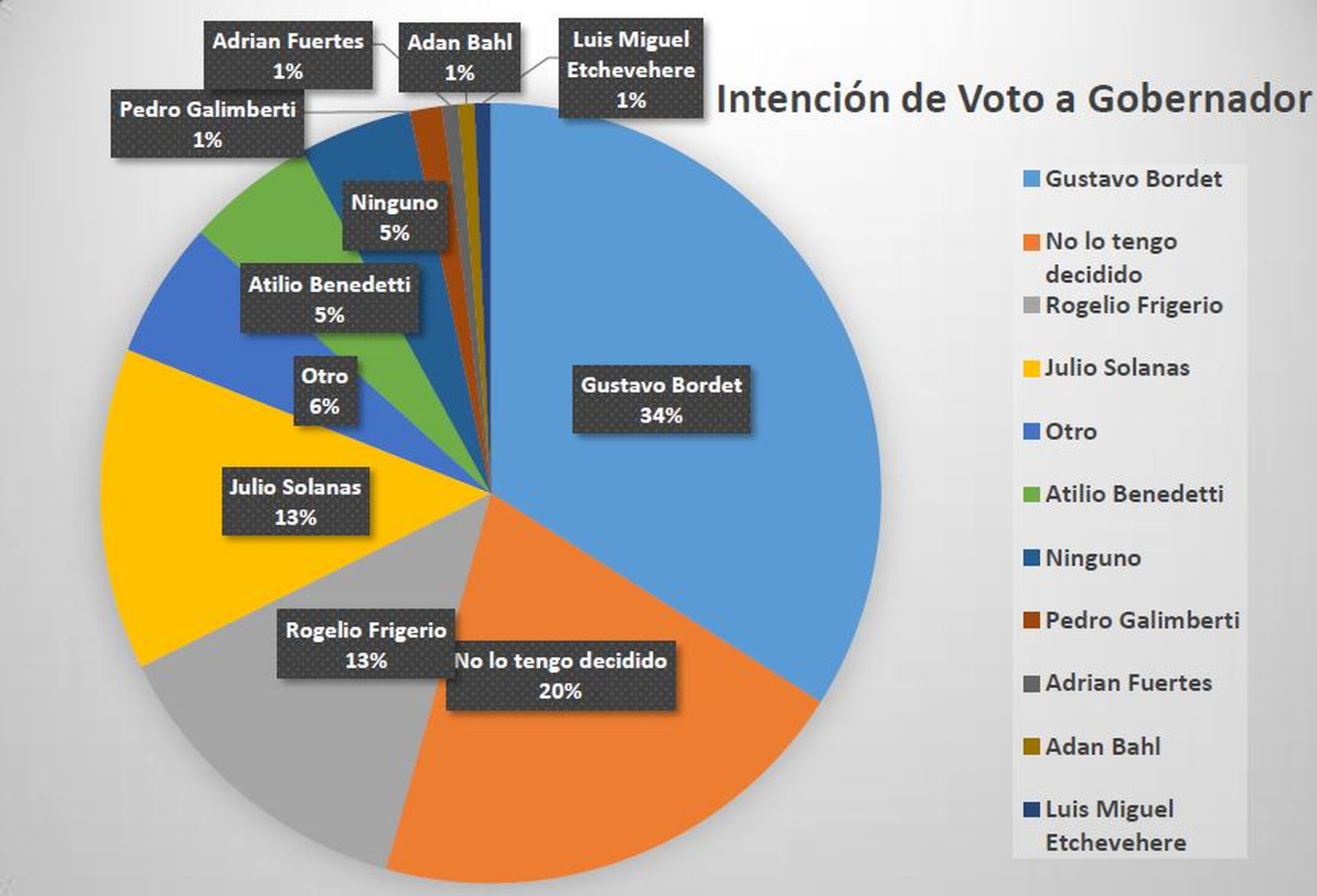 A nivel provincial Gustavo Bordet tiene mayor predominio, en búsqueda de la reelección. No obstante, existe un grado de indecisión que podría llegar a alterar las circunstancias.