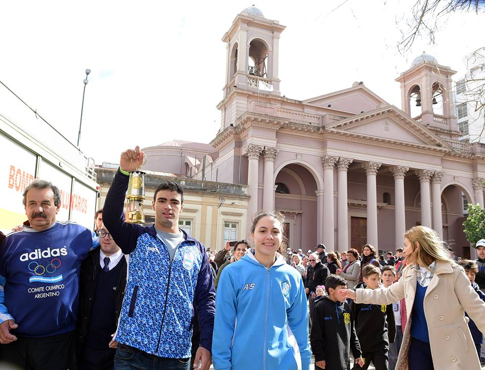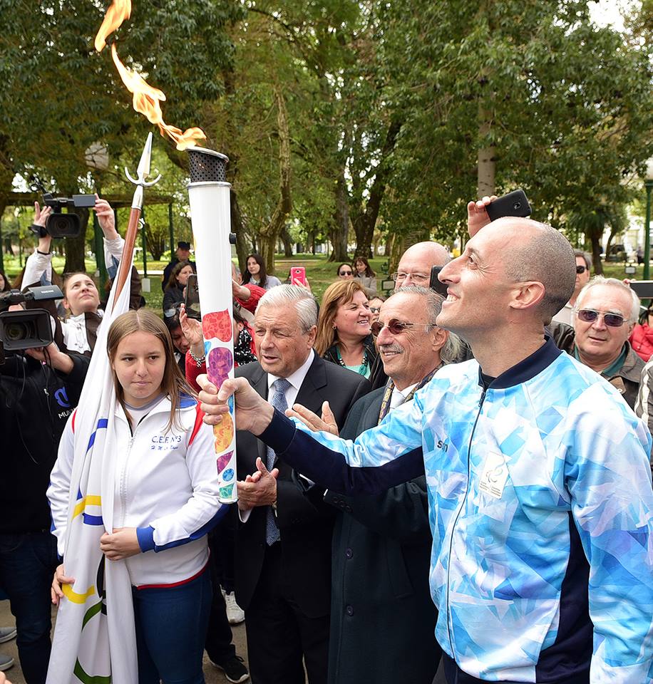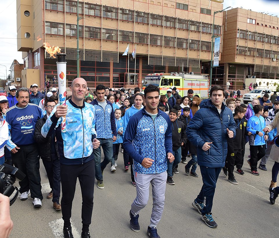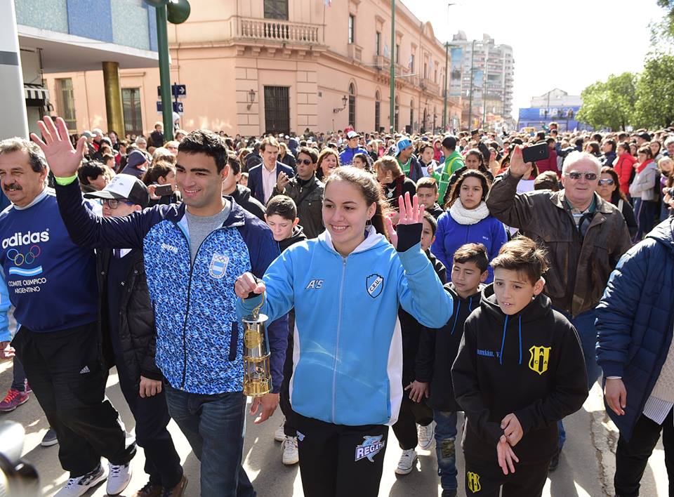 Raúl Villalba, ciclista paraolímpico de nuestra ciudad, y el uruguayense Pablo Zaffaroni, joven garrochista de 17 años que será parte de la Selección Argentina en los Juegos Olímpicos de la Juventud 2018, fueron los portadores de la antorcha olímpica, ante una multitud de vecinos y alumnos de los diferentes colegios de la ciudad que se sumaron a esta histórica jornada.