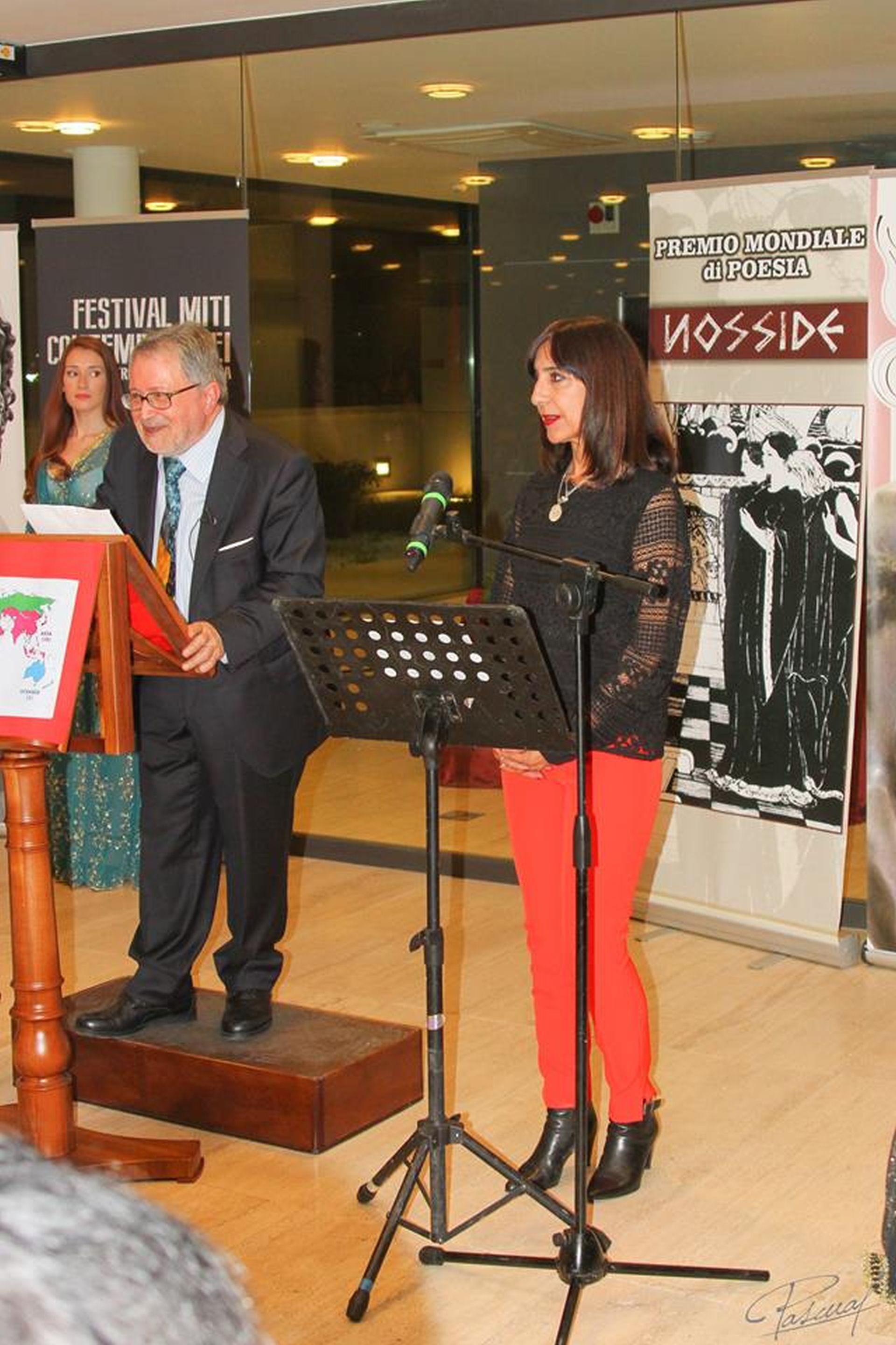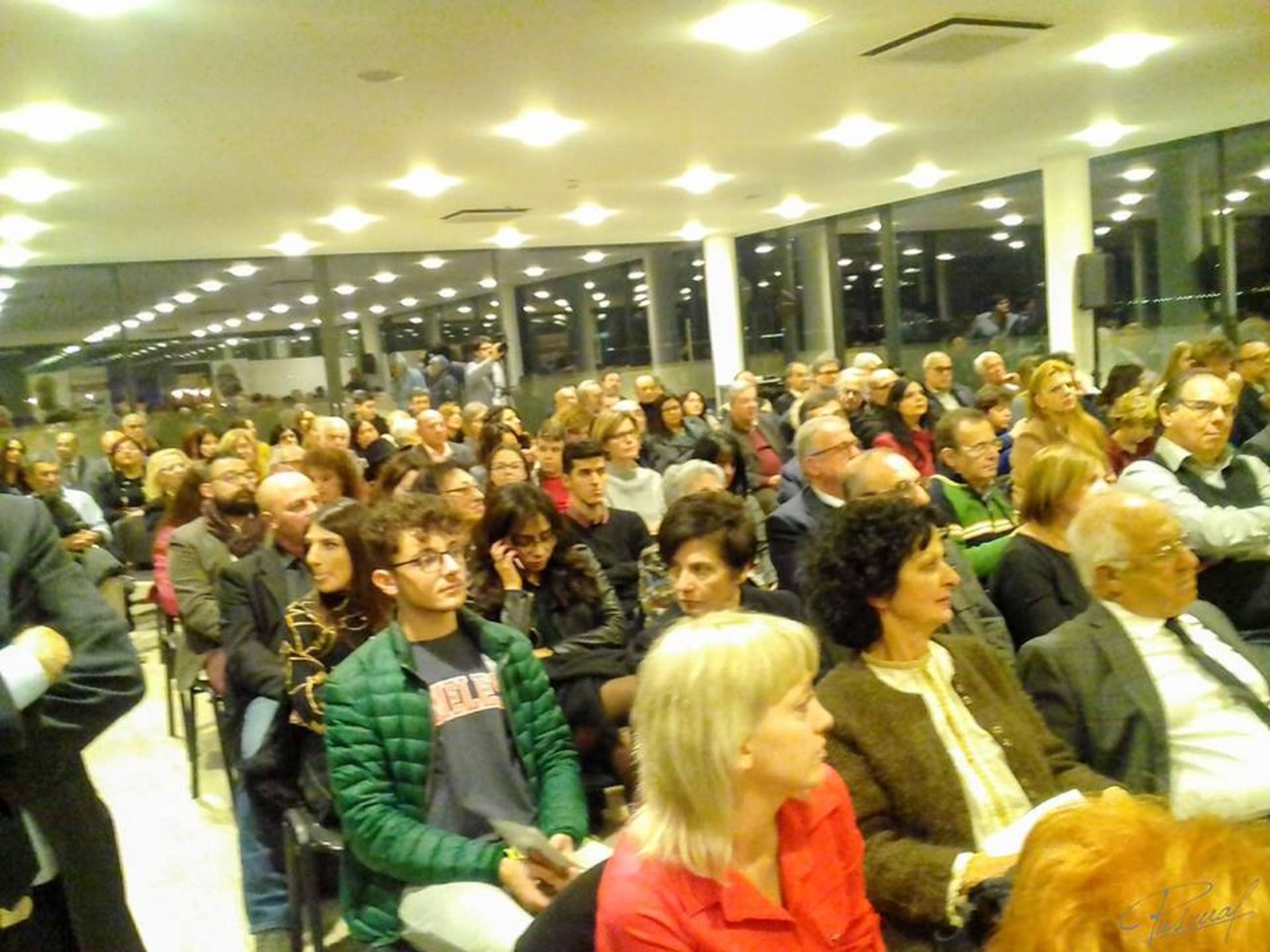 Al día siguiente por la mañana compartimos un paseo por la ciudad su longo mare, sus monumentos, luego hicimos una visita al Museo Arqueológico Nacional de Calabria donde están los famosos bronces de Riace, dos enormes guerreros griegos de bronce que deslumbran por su belleza y son junto con otras apenas 4 obras los únicos del mundo en sus características. El museo alberga restos del pasado griego que distingue al sur de Italia en magnífica y didáctica muestra; se sumaba una exposición sobre la participación de Italia en los Juegos Olímpicos. Al atardecer nos esperaba el acto de premiación del XXXIII edición del Nósside 2017-2018, que se ofreció en la terraza cubierta y de paredes de vidrio del Museo ya mencionado que ofrece una vista estupenda de la ciudad y del longo mare. Para el magnífico evento se hicieron presentes escritores desde sitios remotos o cercanos, personalidades destacadas del ámbito cultural, político y económico de Reggio. Todo fue acondicionado para emulsionarnos en el clima de la Magna Grecia y del espíritu cordial y hospitalario el goce poético de la inspiradora del certamen, la poetisa local Nósside, quien vivió allí en el S. III A.C., hubo la fragancias y sabores mediterráneos, Rubén Pennestri tocaba acordes en su guitarra mientras dos jóvenes, Miryam y Omar, bajo la mirada de Teresa, leían los poemas de los premiados en italiano que emocionaron al enorme público presente. Había allí cuatro hermosas muchachas vestidas con la gracia y la belleza griegas quienes representaban a las musas, el mapa que ilustraba el alcance ecuménico del Nósside y los banners con los dos guerreros griegos que custodiaban el evento transportándonos al Parnaso con sus miradas de piedras preciosas y oro y sonrisa de plata. En el evento participó el grupo de teatro, danza y música llevaba adelante la VII edición del Festival de Miti Contemporanei. Los premiados recibieron regalos (productos regionales, licores y dulces, en base al fruto típico, el bergamotto), obsequios de comerciantes de la ciudad, medallas recordatorias, placas, diplomas, allí se puso como siempre en juego la valoración de la ciudad hacia la poesía y la cultura, y al espíritu de Nósside la poetisa inspiradora que invitaba a los extranjeros a acercarse a compartir un momento de viaje con su gente y la poesía. Los mencionados y la ganadora absoluta recibieron además placas bellísimas donde siendo el máximo premio la elaboración de una obra original y única de orfebrería del famoso maestro de Crotona Gerardo Sacco con el nombre de la ganadora, en este caso el mío, que revitaliza en plata la imagen del artista Umberto Boccioni (1882-1916). Cabe destacar el dato no menor que a los participantes premiados se les ofrece hospedaje y a los mencionados y ganador absoluto una suma de dinero a veces imprescindible para cubrir los gastos de movilidad. Por mi parte con gran orgullo hice entrega del obsequio que el municipio de Concepción enviara como presente al Profesor Amato y Débora, escritora griega, leyó el mensaje que lo acompañaba. Es decir que, la mirada generosa del director de orquesta de este magnífico premio contempla hasta los mínimos detalles para que los premiados además de disfrutar de una velada cultural se sientan como en casa. Entre palabras, emociones y aplausos se cerró la premiación y se invitó a los presentes a asistir al musical Ulises, un espectáculo sobre música contemporánea de tremendo nivel, fusión de voces, melodías e instrumentos antiquísimos y modernos, el magnífico teatro de Reggio, acorde a la belleza con que se presentó la historia del gran Ulises y donde el mar y la vida son caminos tormentosos, pero Itaca y Penélope esperan. Noche de cúmulo de emociones que se cerró en una cena y brindis que nos regaló Andrea Audino, compartimos la famosa torta de Bergamotto del Nósside, reencuentro con escritores de otras ediciones de Nósside 2010: Salvatore, Ezzra, belleza de sentir que aún con alegría y solo una pizca de paciencia es posible intercambiar sensibilidad y afecto que los idiomas no son límites sino solo caminos en las estelas del mar no siempre agitado que nos toca transitar, como a Ulises.