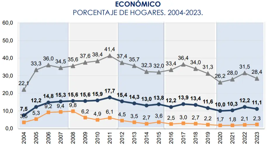 Según los datos relevados, entre 2004-2008 se observa “un incremento en la capacidad de ahorro de los hogares” al pasar de 7,5% a 15,6% del total e incluso llegar al pico del 17,7% de los hogares en 2011. Sin embargo desde entonces aparece «una tendencia decreciente y generalizada en la capacidad de ahorro”. En detalle, para 2019 el porcentaje de familias con capacidad de ahorro había descendido a 11,6%, cayendo incluso al 10% en 2020 en el marco de la pandemia por Covid-19. Si bien luego de ello comenzó una recuperación y en 2022 el guarismo se ubicó en 12,2%, los datos recientes de 2023 volvieron a ubicarlo en niveles similares a hace cuatro años atrás (11,1%).