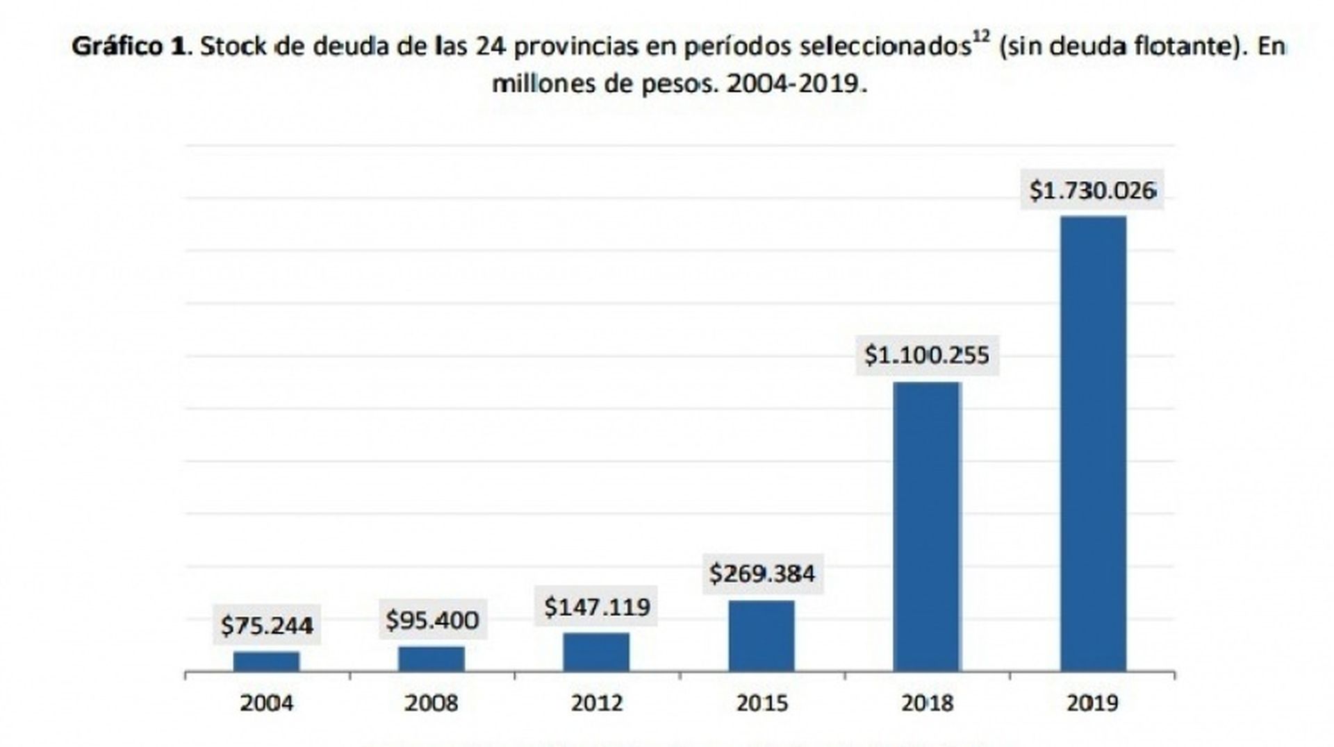 Con relación al análisis sobre el endeudamiento de las provincias, el centro de estudios indica que desde 2004 hasta 2015, desde el Gobierno Nacional (de Néstor Kirchner y Cristina Kirchner) se impulsó el desendeudamiento como política económica rectora, no solo en el orden nacional (vía pago al FMI y reestructuración de la deuda) sino también a nivel provincial.