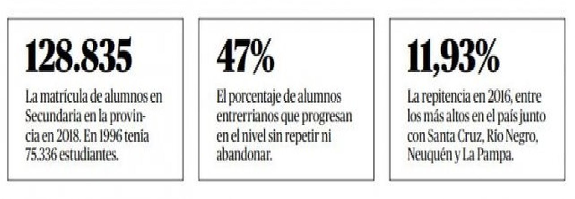 Creció la cantidad de alumnos en los últimos 20 años, pero no permanecen en el sistema. Algunos repiten y cursan con sobre edad, pero la mayoría abandona. La provincia tiene uno de los índices más bajos de retención en ese nivel.