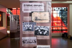 Dividieron la exposición por banners con textos cortos y fotografías. Además, sumaron acuarelas pintadas por el artista Omar Panossetti y un sector de pelotas intervenidas que hacen referencia a la temática tratada. Ibarra dice que no solo quisieron invitar a los apasionados del fútbol, sino también a los que les gusta la historia y el arte.
