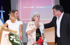 En marzo del corriente año, el municipio realizó un homenaje a mujeres uruguayenses. Esta vez el reconocimiento fue para ella y materializado en el obsequio de un ramo de flores que recibiera de manos del intendente Martín Oliva y de la vice gobernadora Laura Stratta.