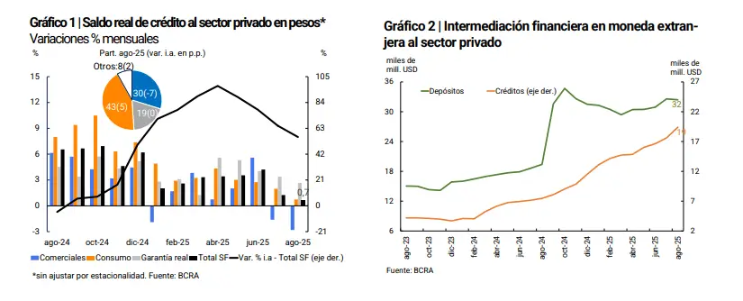 Esto podría dar cuenta de que el ciclo de toma de préstamos personales por parte de las familias estaría agotado. Según los datos del último informe del Banco Central, en agosto las líneas de consumo apenas se movieron un 0,7%, mientras que la financiación para el segmento comercial se redujo en el mes un 2,8%.
