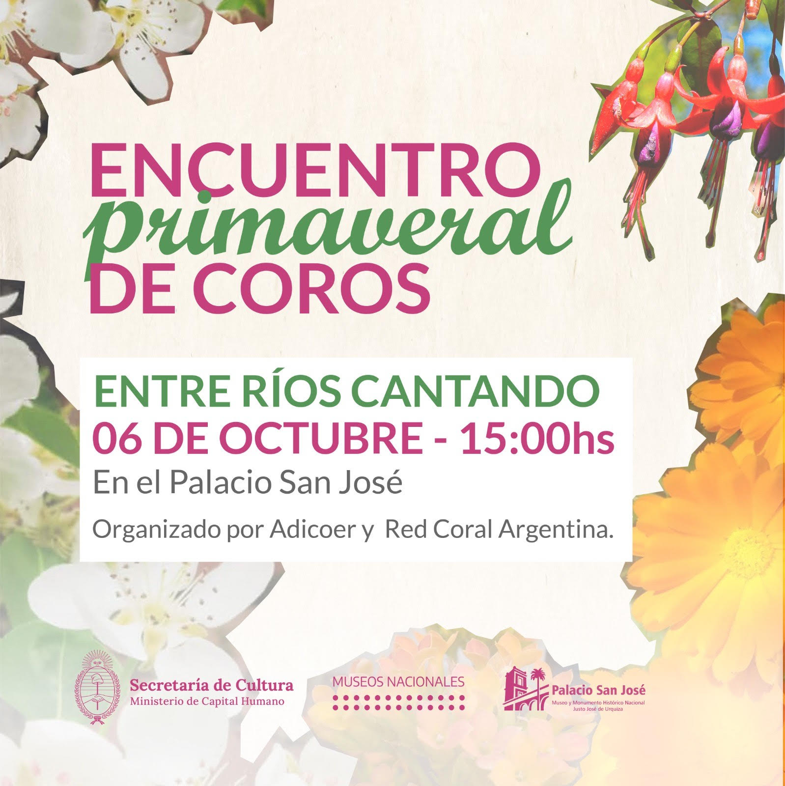 El próximo 6 de octubre, a las 15:00 horas , el Palacio San José será sede del Encuentro Coral “Entre Ríos Cantando”.